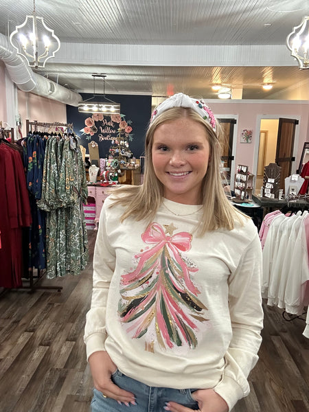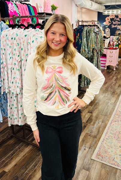 Wrap yourself in cozy holiday cheer with this cream long sleeve tee featuring a charming Christmas tree graphic. Perfect for festive gatherings, casual winter days, or anyone who loves spreading seasonal spirit year-round. The soft, comfortable fit makes it an easy go-to for layering or wearing solo. Whether you're decorating, caroling, or simply embracing the magic of the season, this playful design brings warmth and whimsy to your wardrobe. A delightful addition to your holiday collection that celebrates the joy of the season in style.